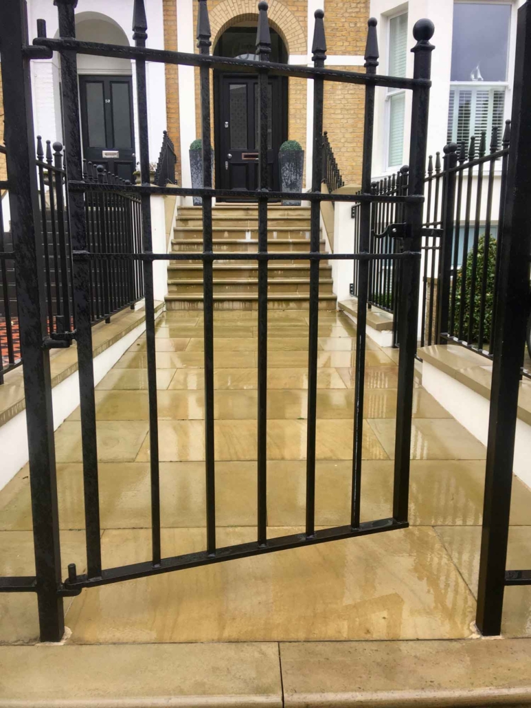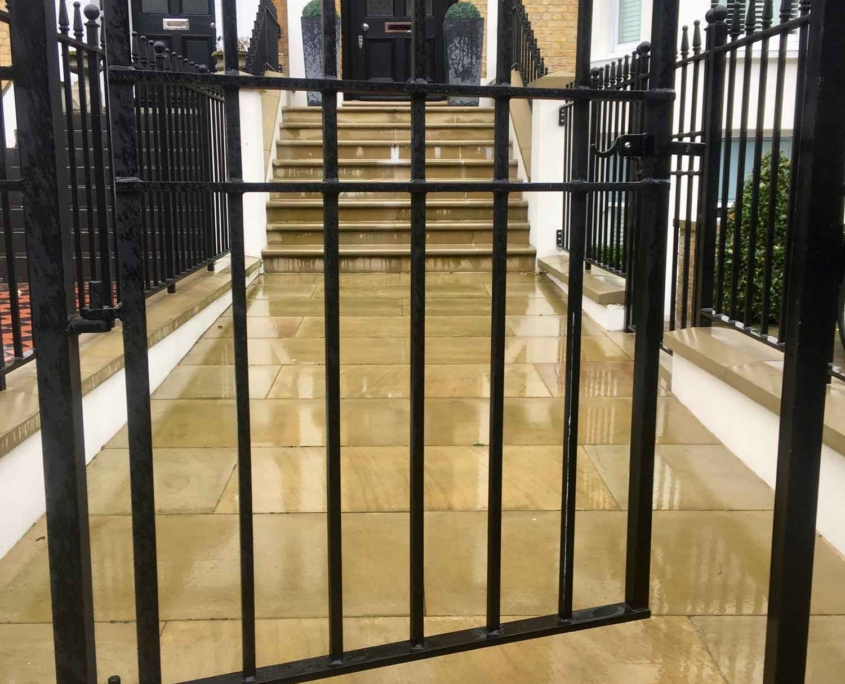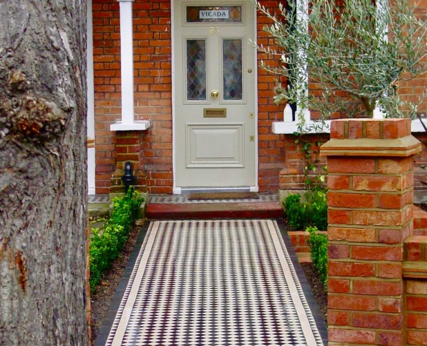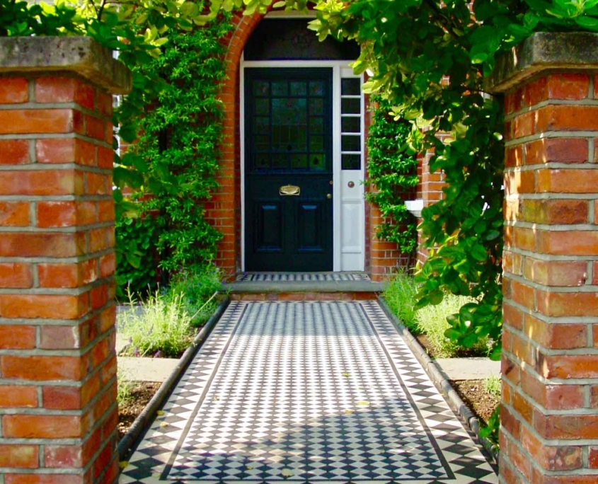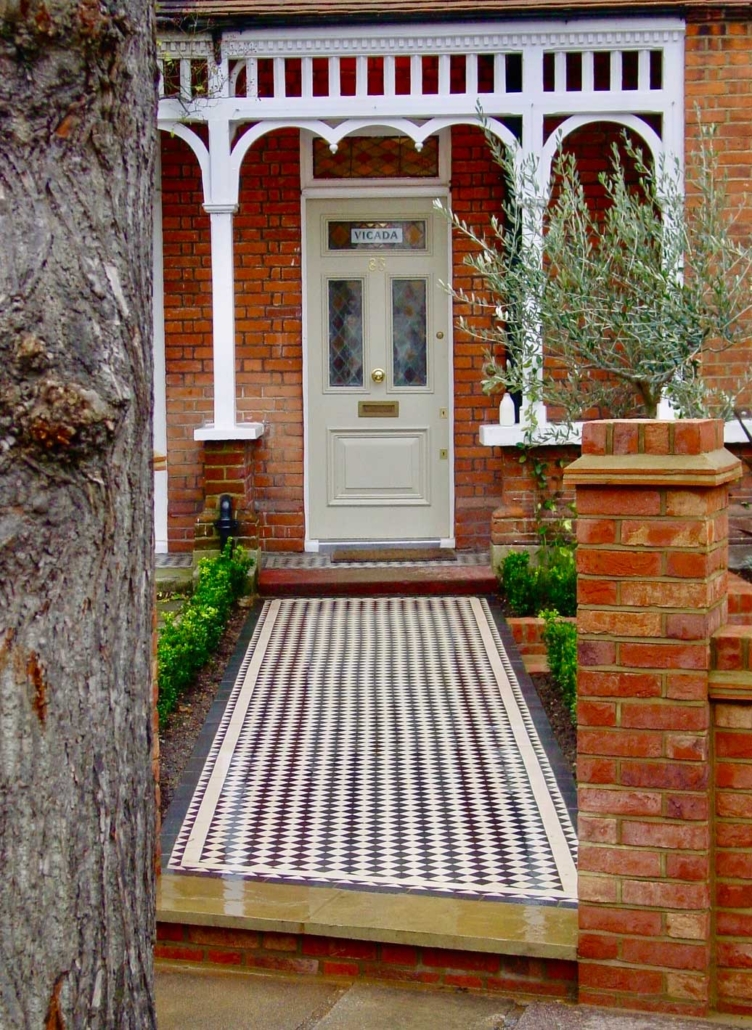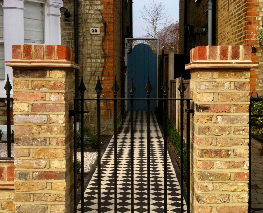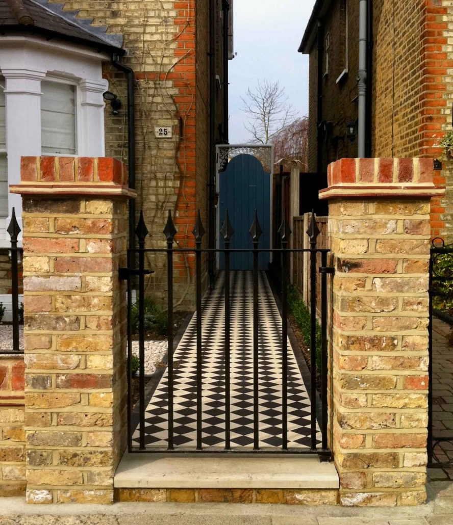 Here is a selection of front paths and gates- mostly period- showing examples of brickwork, masonry, tile and paving solutions and metalwork gates and railings.